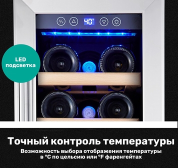 Винный шкаф Mayen предлагает удобную возможность выбора направления открытия дверцы, что позволяет устанавливать её как на правую, так и на левую сторону. Это делает шкаф невероятно универсальным и позволяет идеально вписать его в любое помещение, независимо от планировки или расстановки мебели. Вы сами можете выбрать наиболее удобный вариант, что особенно ценно для компактных пространств, где каждый сантиметр важен.